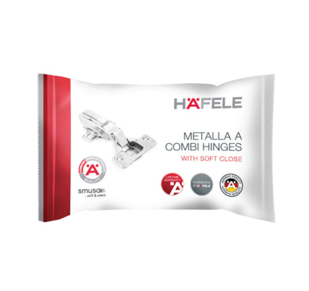 Bản lề Hafele METALLA A 110 độ, giảm chấn, trọn bộ DIY 493.03.021