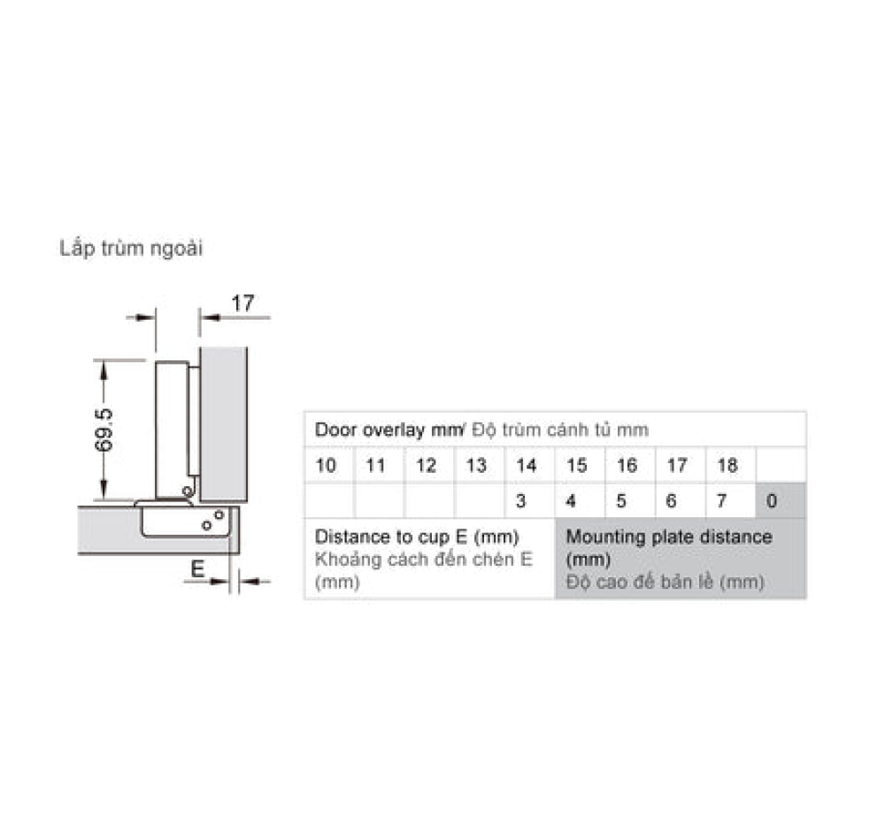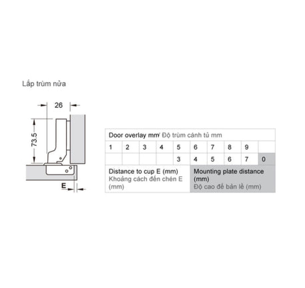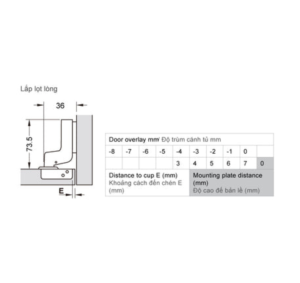 Chiều sâu lỗ khoan: Chén bản lề 12 mm
