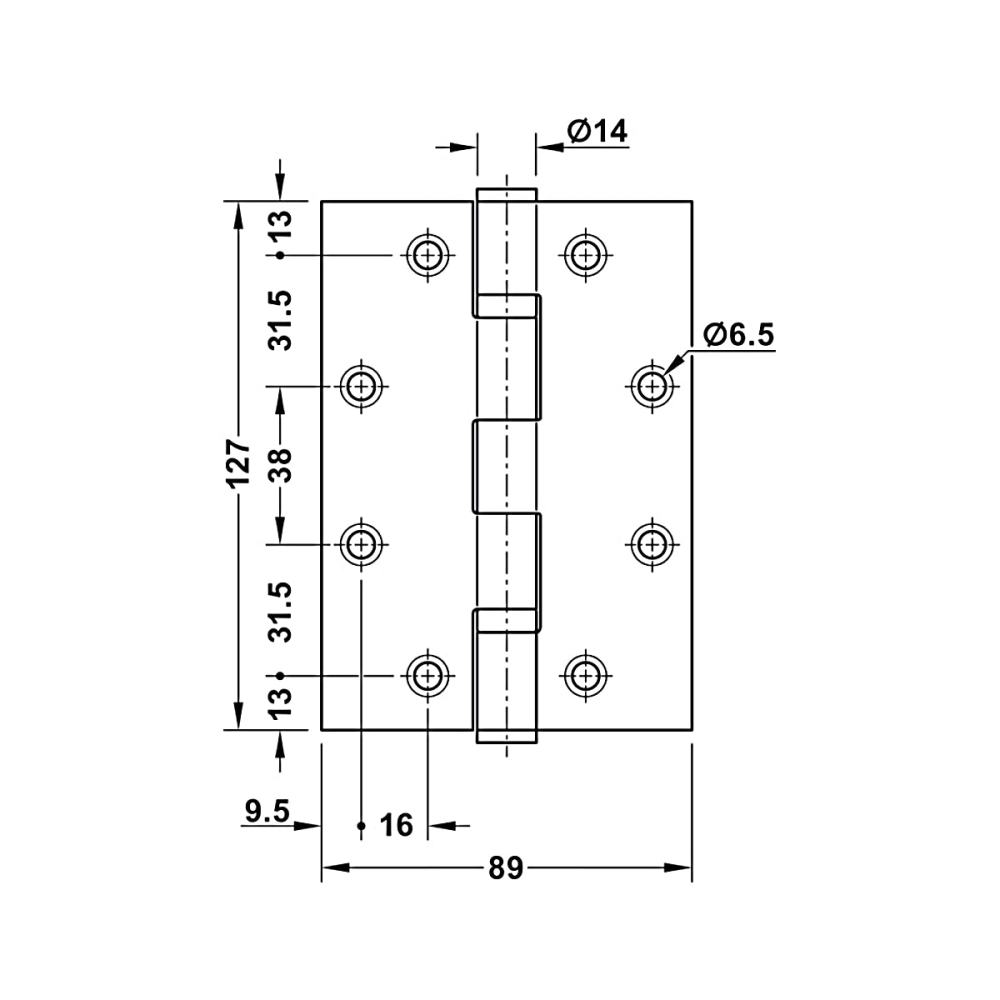 Bản lề lá Hafele chống cháy 127x89x3 - 2 vòng bi 926.98.130