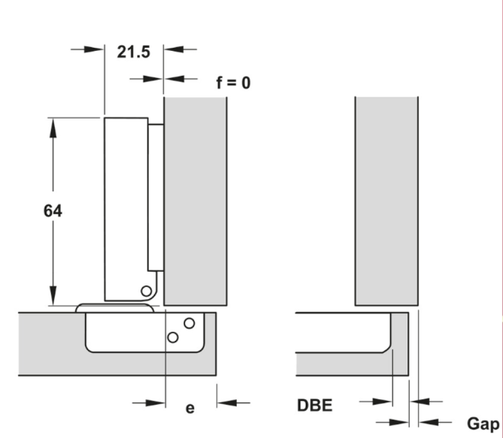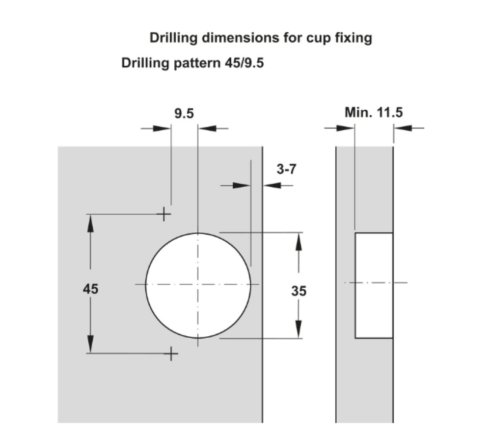 - Điều chỉnh : điều chỉnh mặt bên +/-2.5mm, điều chỉnh chiều cao +/-2mm ( qua đế chén bản lề ), điều chỉnh chiều sâu +/-2mm