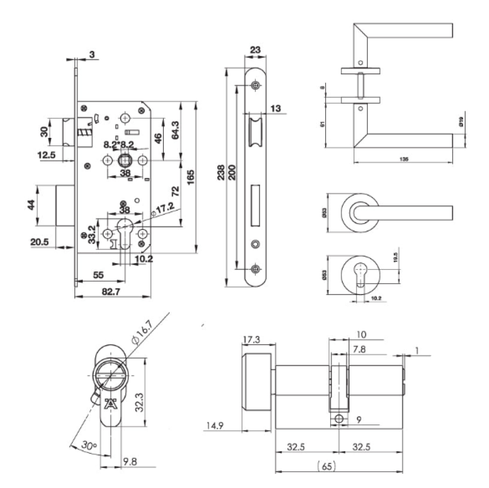 - Trọn bộ khóa tay nắm gạt dành cho cửa đi