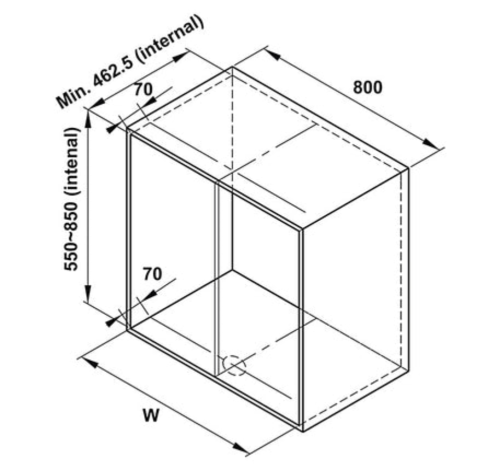 Chiều sâu lọt lòng: Tối thiểu 470 mm
