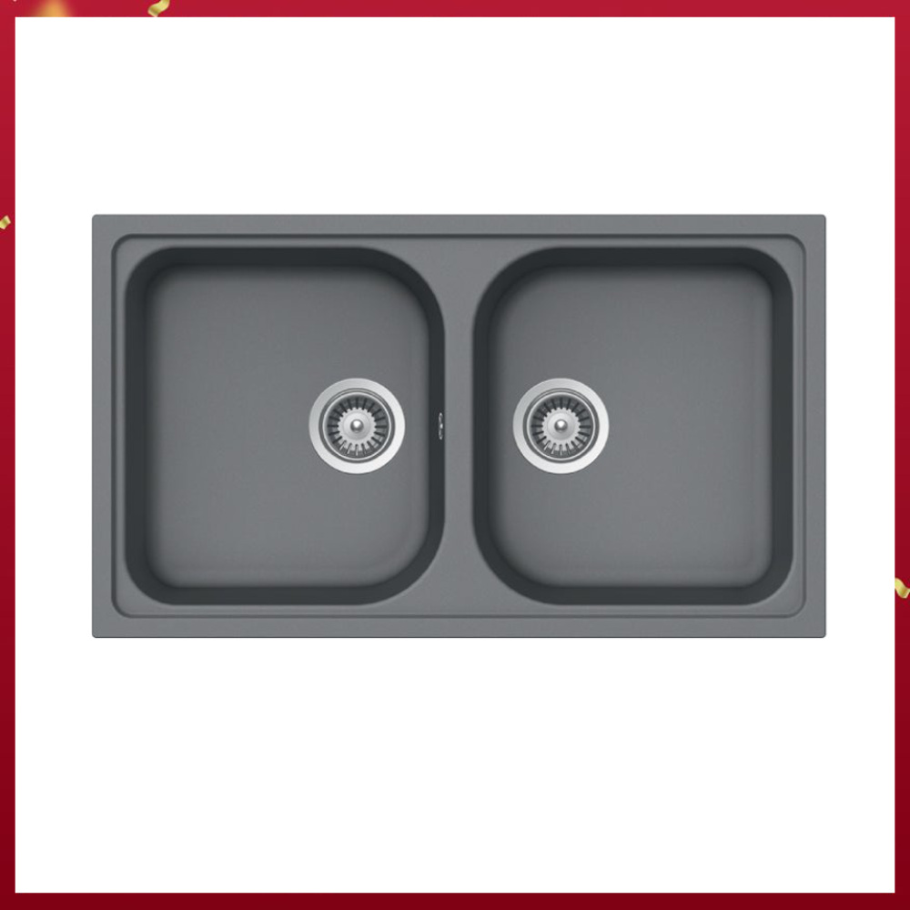 - Chậu rửa đá 02 hố chậu bằng nhau, màu xám