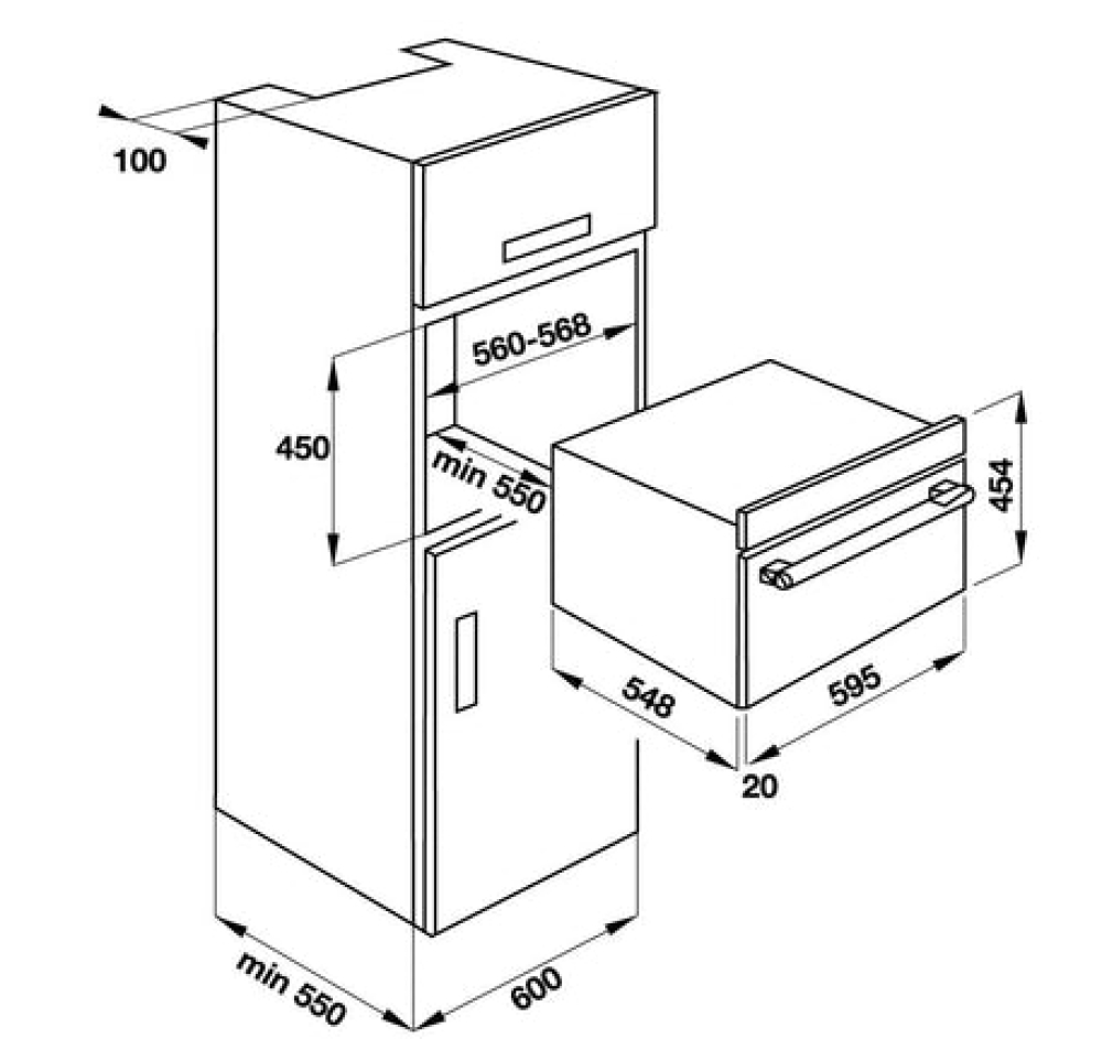 | Kích thước hộc tủ: 560-568R x min550S x 450C mm |