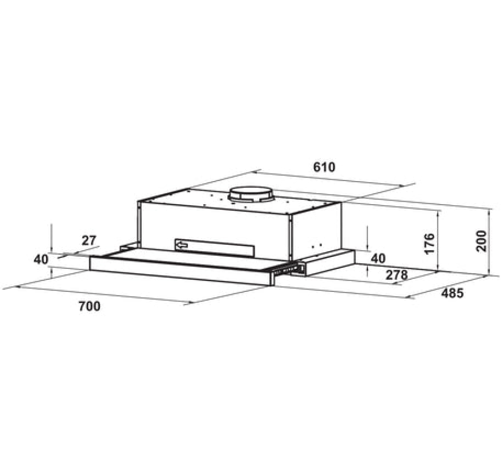 | Kích thước sản phẩm: 700R x (278-485)S x 200C mm |