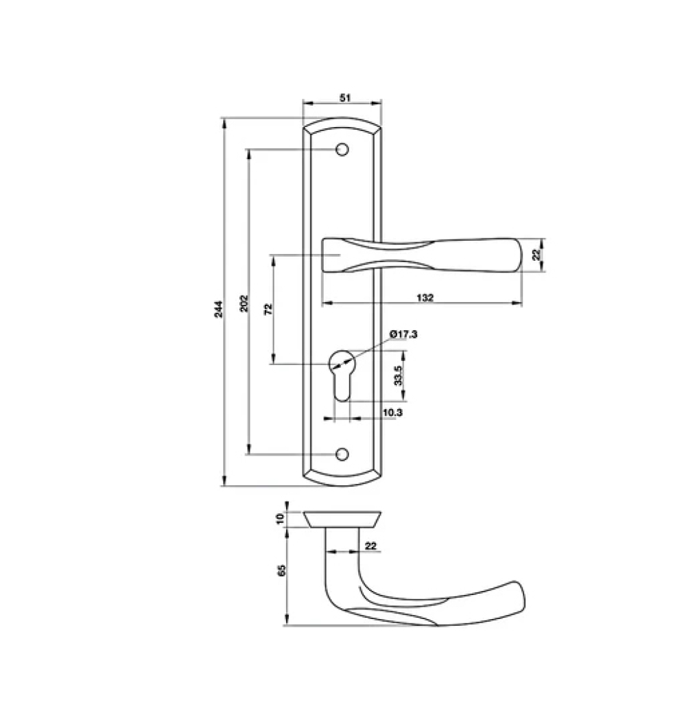 Trọn bộ gồm: 2 tay nắm gạt đế dài, 1 bộ vít