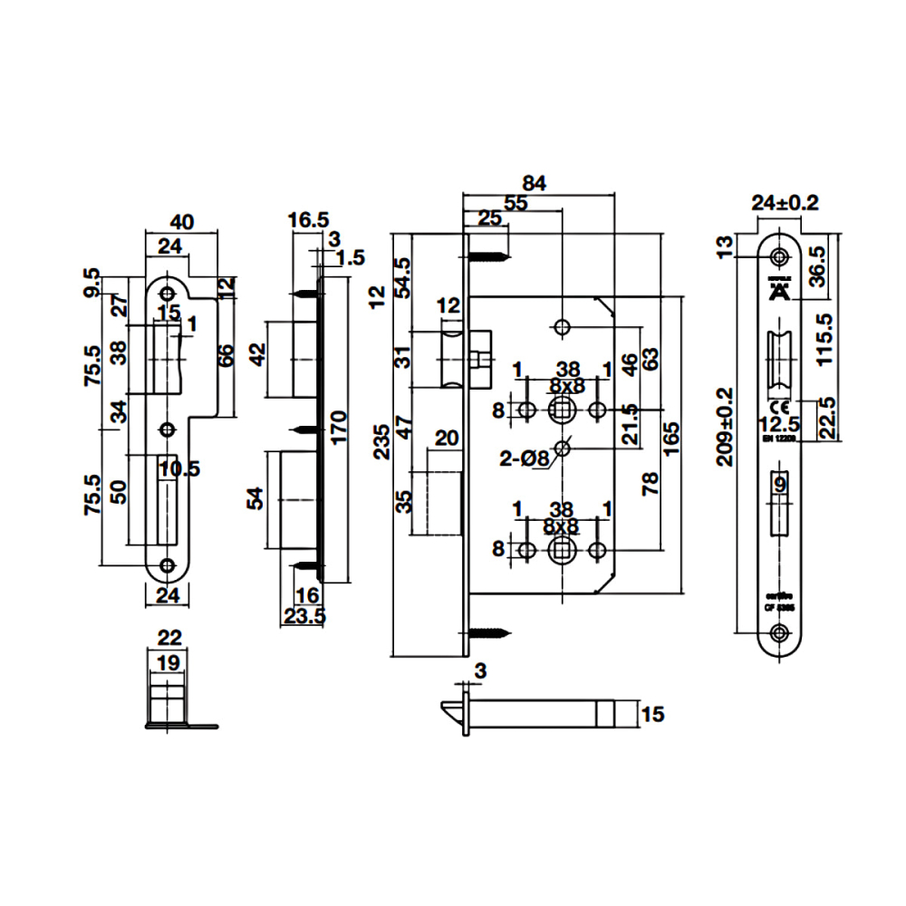 Khóa Vuông Econo Cửa Dày 22mm Hafele 232.01.220