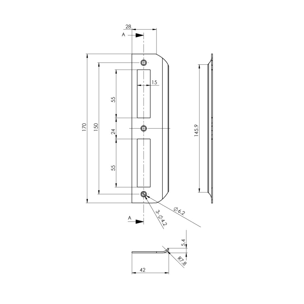 | Khoảng cách từ cạnh cửa đến tâm lỗ ruột khoá: 30 mm |