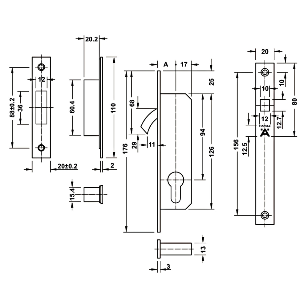 Thân khóa Hafele cho cửa trượt 911.26.672