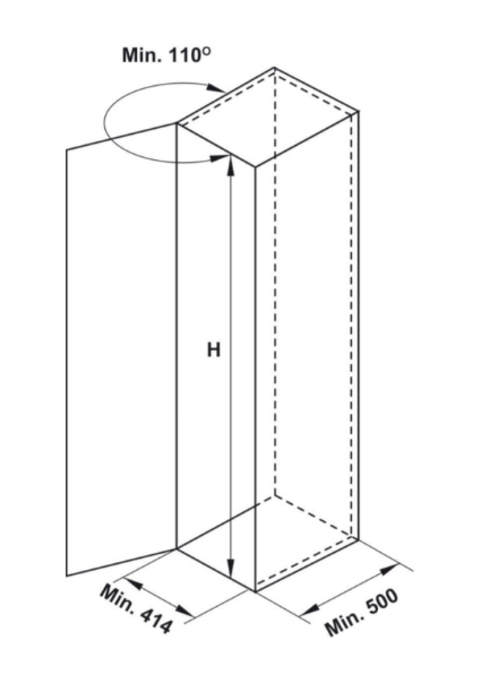 - Chiều rộng cửa : tối thiểu 450mm