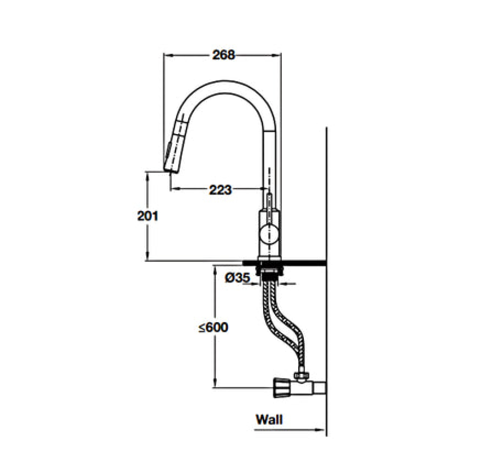 Thân vòi bằng Inox 304, đầu vòi bằng ABS