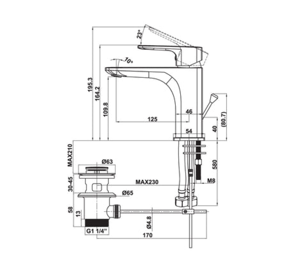 Vòi trộn Hafele Kobe 100 chrome có bộ xả kéo 589.15.001